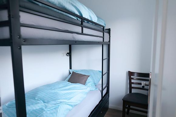 Die Wohnung bietet genug Platz fürs Abenteuer zu zweit oder auch für den kleinen Familienausflug: zwei Schlafzimmer, ein kuscheliges Wohnzimmer, eine schicke Küche mit Kühlschrank und Kaffeemaschine für die überlebenswichtigen Morgen-Rituale. Frisch geduscht und mit kostenlosen Pflegeprodukten eingeseift, kann der Tag starten, Handtücher und Bettwäsche liegen auch schon bereit. Für den kleinen Außeneinsatz wartet eine Terrasse auf Sonnenanbeter, und auch die Kids haben ihren Spaß am Spielplatz. Falls der Bewegungsdrang ruft, schwingen sich Gäste einfach aufs Rad, denn die Umgebung lädt ein, entdeckt zu werden.